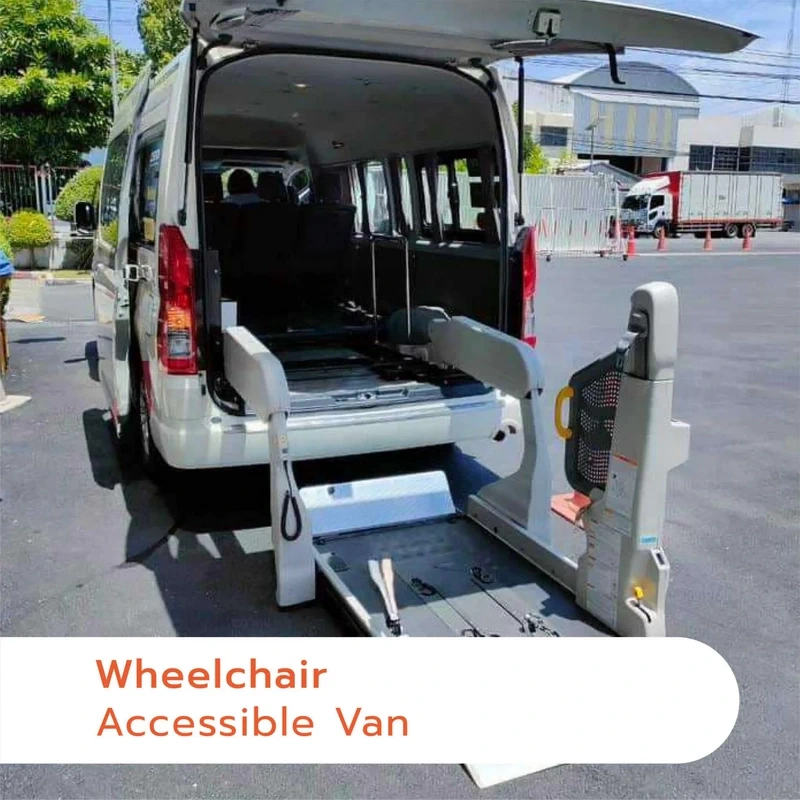 บริการรถตู้วีลแชร์พร้อมระบบลิฟต์ยกวีลแชร์ด้านหลังรถ สำหรับผู้สูงอายุ ผู้ป่วย และผู้ใช้วีลแชร์ ช่วยให้ผู้ใช้วีลแชร์ขึ้น–ลงได้โดยไม่ต้องเคลื่อนย้ายตัว ใช้งานง่ายด้วยรีโมทคอนโทรล ลดภาระของผู้ดูแล และเพิ่มความปลอดภัยทุกขั้นตอน พร้อมคนขับมืออาชีพที่ผ่านการอบรมด้านการดูแลผู้สูงอายุโดยเฉพาะ ให้บริการทั่วกรุงเทพฯ และต่างจังหวัด รองรับการเดินทางไปโรงพยาบาล รับ–ส่งสนามบิน หรือโอกาสสำคัญต่าง ๆ